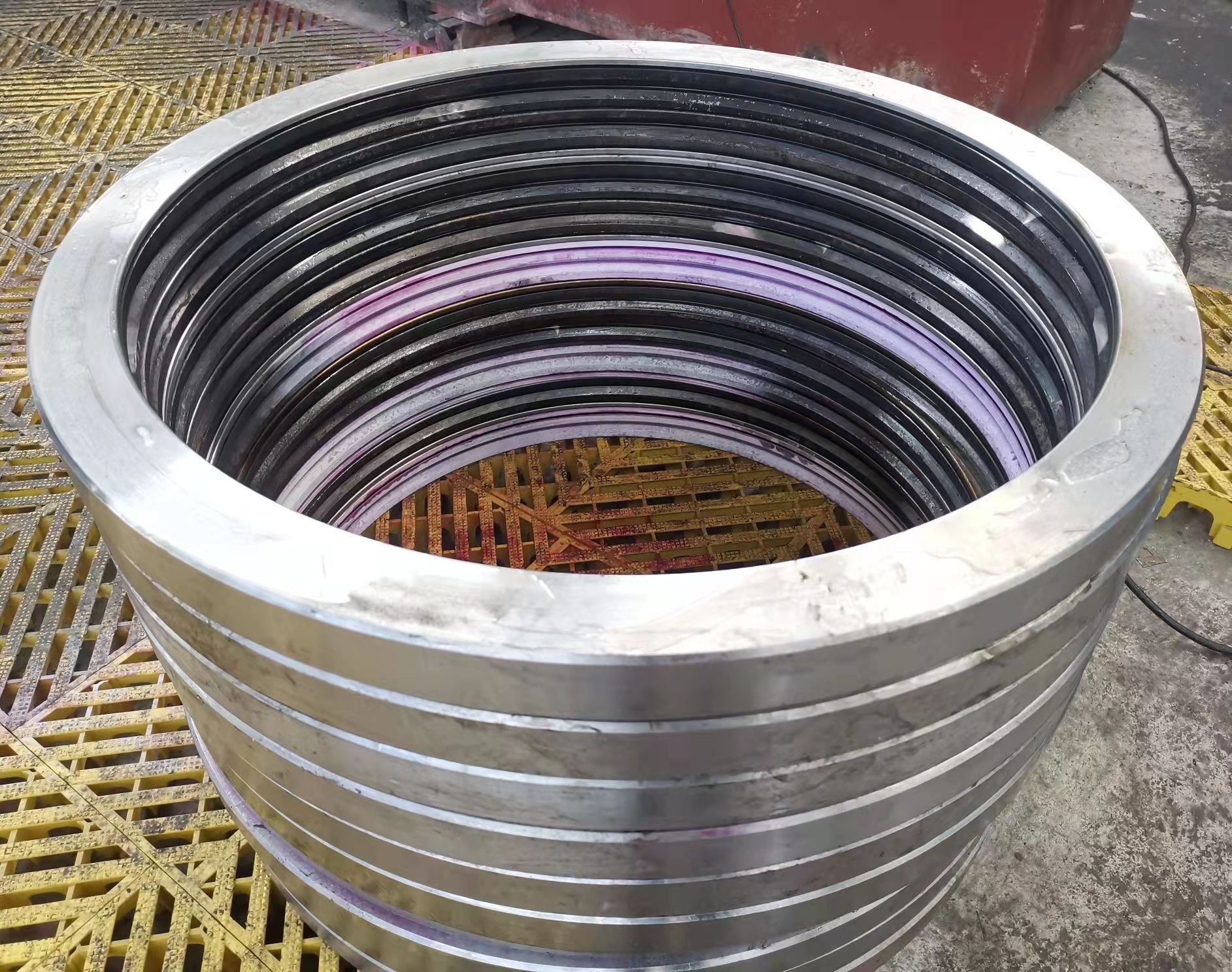 我公司對中頻感應淬火機進行設備升級改造,增加了齒淬火功能,拓寬了加工范圍,改造后的中頻感應淬火機可以對直徑100mm-7000mm的各類球溝道、直線滾道、球面滾道以及各類曲線的滾道進行表面淬火,對各類大模數和小模數的齒圈齒輪表面和齒根淬火,淬火硬度可以高達62HRC,淬火深度可以達到7毫米左右。